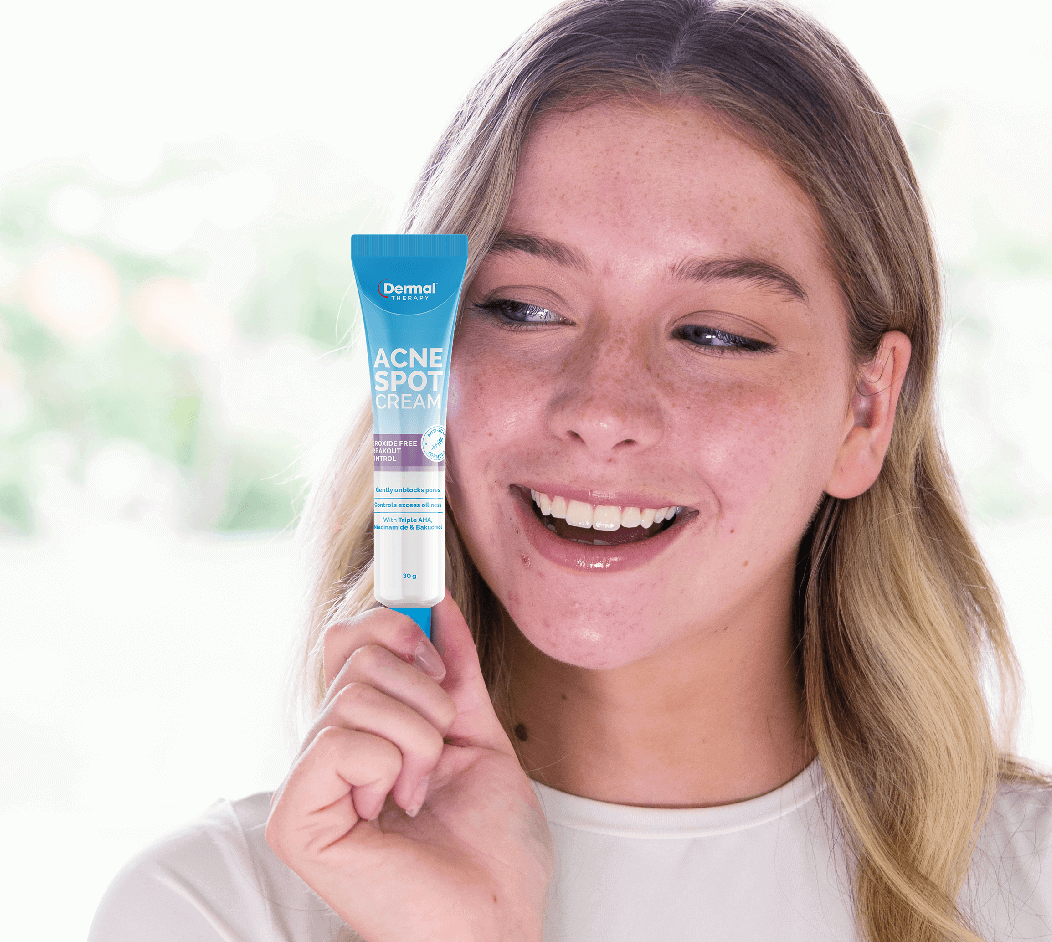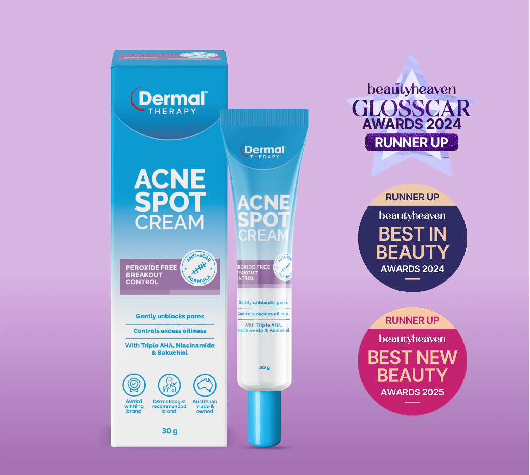Dermal Therapy Acne Spot Cream is formulated with triple alpha hydroxy acids (AHA), known to gently unblock pores, blackheads and whiteheads. Plus, the unique, anti-scar formula works to visibly reduce the size of pores and skin redness and fade pigmentation.