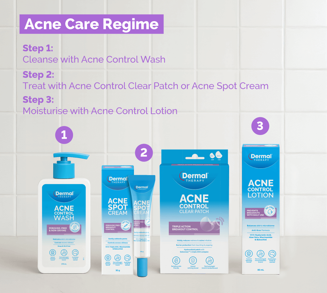 - Moisturise and prevent using Dermal Therapy Acne Control Lotion