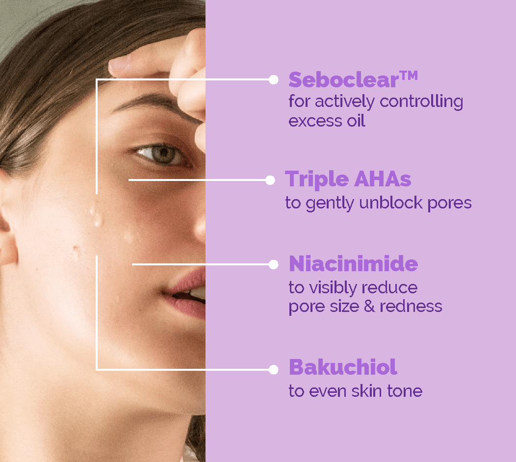 - Actively controls excess acne-producing sebum with Seboclear™