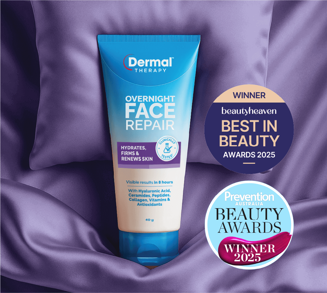 Wake up to visibly smoother, firmer, and deeply hydrated skin with Dermal Therapy Overnight Face Repair Cream. This intensive yet lightweight face cream is non-greasy and works while you sleep, delivering clinically tested results in just 8 hours. It restores and rejuvenates for a radiant complexion, offering hydration without transferring onto your pillow, so you know all the powerhouse ingredients are actively working to repair your skin: